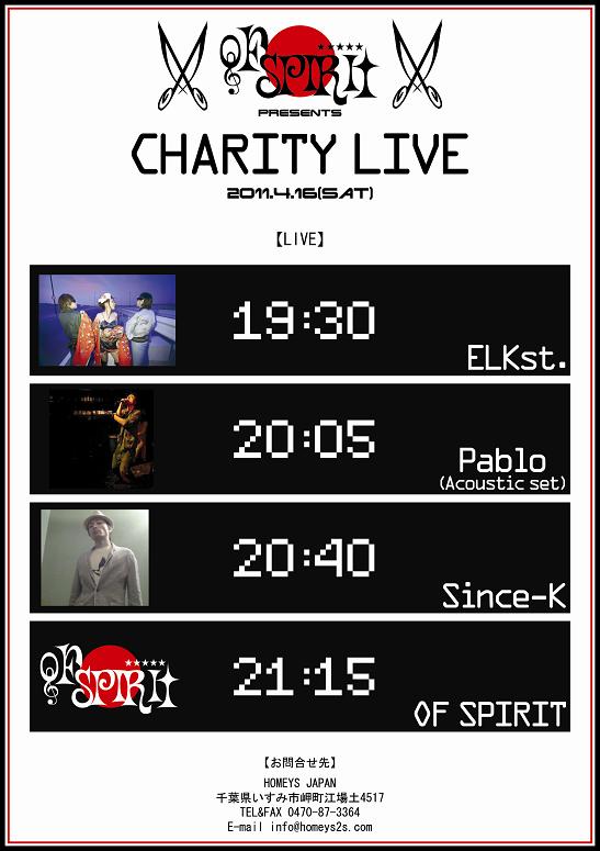 4/16(土)に開催するOF SPIRIT主催チャリティーライブの詳細が決まりました。