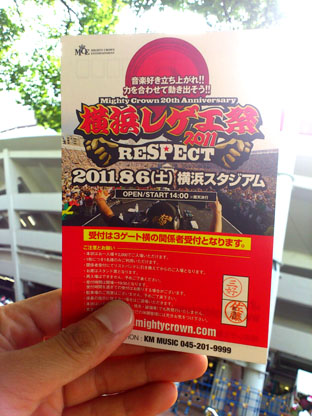 ![]() 遂に来ました横浜レゲエ祭2011!!! 今週末です!!! 今年もアットゥ〜〜〜イドラマが繰り広げられるでしょう! 今回の出演者も沢山の仲間達が出てくれる! 仲間達があの大舞台で歌うなんて嬉しいと言うか凄いと言うか、なんか言いようの無い興奮です! 今年もぶちかましてや! 歌い終わったらガッツリ飲もう! ![]() レゲエ祭ダー絶賛発売中!(笑) ![]()