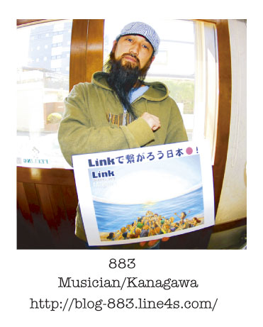 Linkで出来る事! それは・・・ 元気な姿を伝える事! そしてパワーを送る事! そこで「Linkで繋がろう日本!-Never ever give up.-」 プロジェクトを展開! そんな大げさな事じゃないよ(笑) ただ俺達は一人じゃ無いよ、繋がっているんだよと伝えたいだけ(笑) 昨日出来上がったパネル!tomio君ありがとう! ![]() 早速のお客さん!883 ![]() U-SKE ![]() 俺達は Never ever give up.