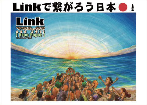 ![]() Tomio-kunが Link Vol.07の絵を描いて来てくれたよ! 今回のテーマは復興! とても力強く、優しく、愛がある。 流石 Tomio-kun ! この絵(原画)を復興の為に役立てたいとTomio君から申し入れがあり このホームページを使ってオークションを開きます。 収益金は全額被災地に寄付するそうです。 Tomio巨匠素晴らしいです。 オークションシステムが整い次第 J'sホームページ内でお知らせします。 必ず家宝になりますよ!